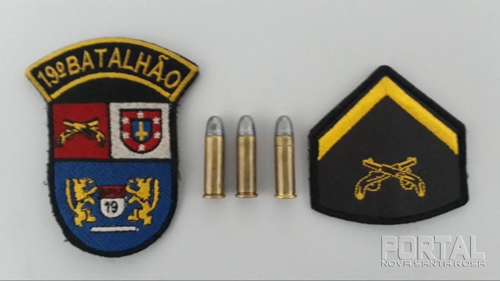 Foi então efetuado busca domiciliar e localizado em uma das gavetas de um roupeiro no quarto três munições .38, sendo duas de marca Aguila e uma de marca CBC.