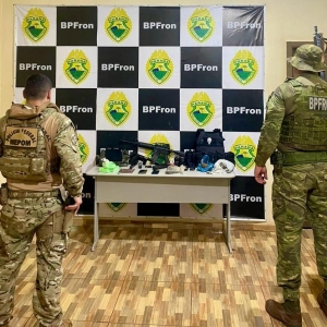 No final de semana, policiais militares do Batalhão de Polícia de Fronteira - BPFron, em ação integrada com policiais federais do Núcleo Especial de Polícia Marítima - NEPOM/PF, descobriram armas, drogas e munições em uma propriedade rural nas proximidades da cidade de Terra Roxa.