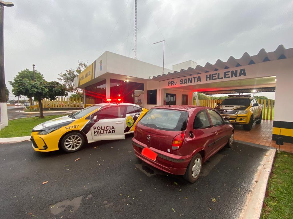 Equipe policial de plantão do Posto de Polícia Rodoviária de Santa Helena foi informada por usuários da rodovia os quais relataram que havia um veículo de cor vermelha trafegando em zig zag pela rodovia e invadindo pista contrária.