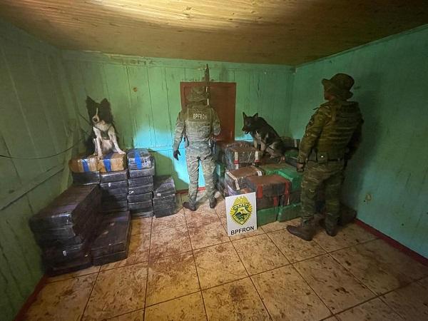 Em dado momento, numa casa abandonada, os cães de faro indicaram a presença de drogas no local e, desta forma, os policiais militares iniciaram as buscas até que foram localizados 1.699,800 kg (uma tonelada, seiscentos e noventa e nove quilos e oitocentos gramas) de maconha.
