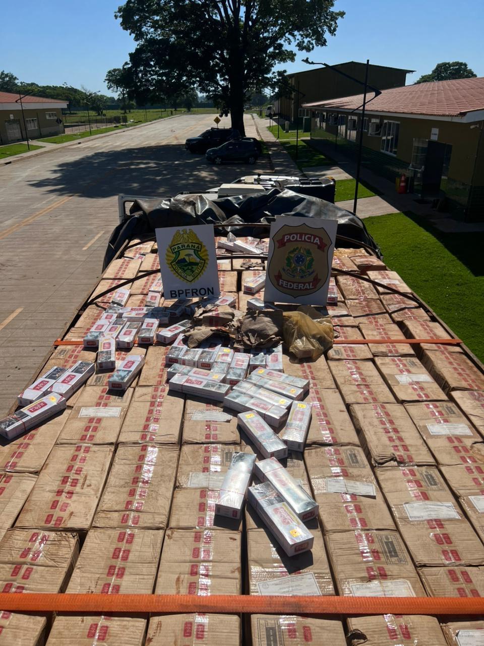 Durante a vistoria no caminhão VW/24.280, os policiais descobriram o motivo da fuga: no compartimento de carga havia 350 caixas de cigarros contrabandeados do Paraguai — um total de 17.000 pacotes. O veículo também tinha restrição de furto/roubo, registrado em Rolândia/PR no dia 12 de abril de 2019.