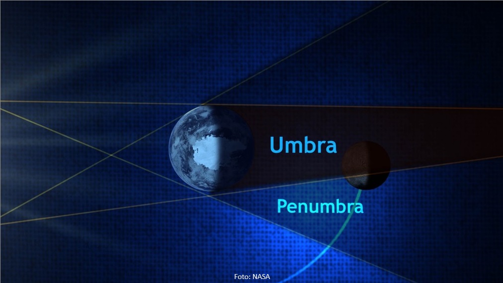 Quando a Lua entra na penumbra, há o eclipse lunar penumbral e quando ela vai entrando na umbra há o parcial. Já o total acontece quando ela está totalmente mergulhada na umbra.