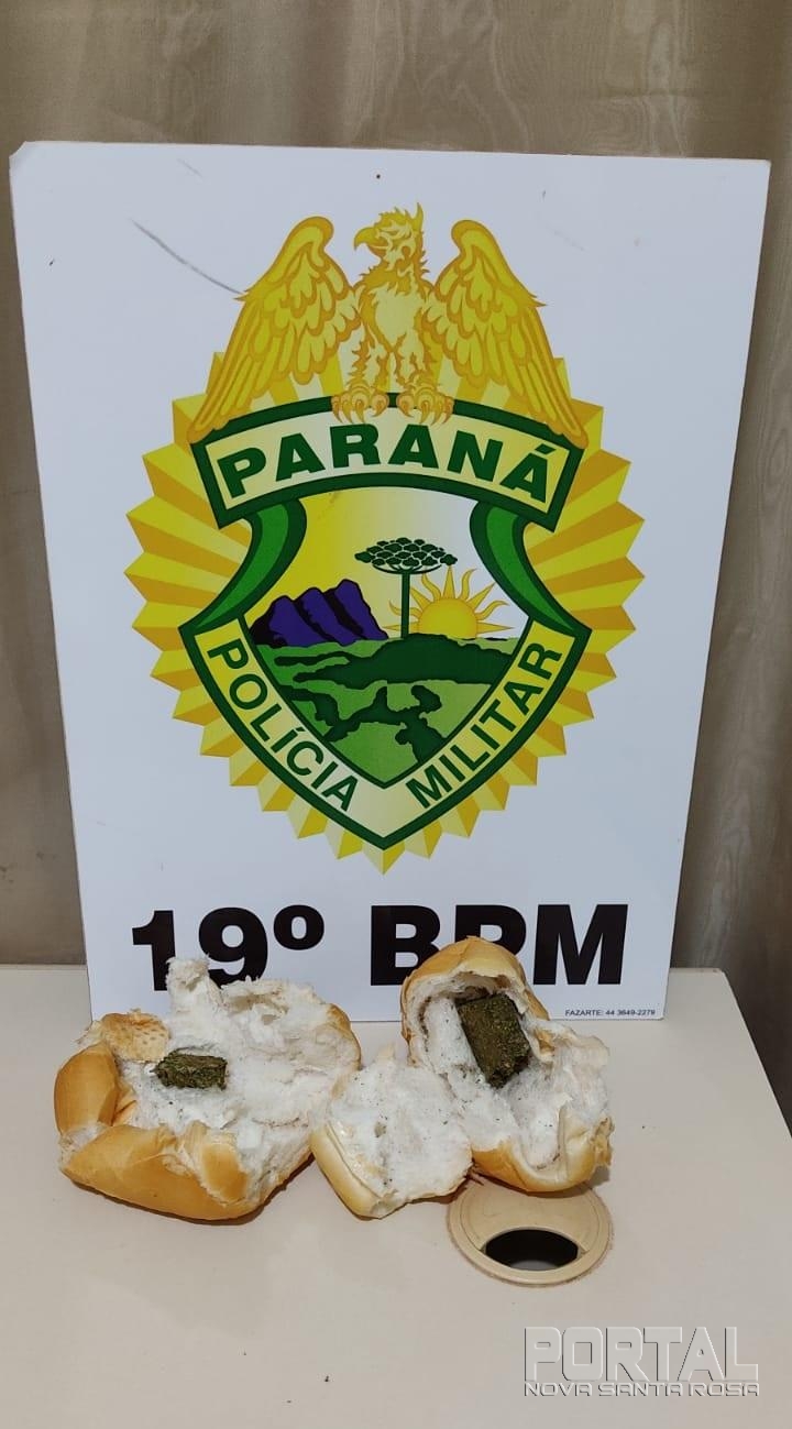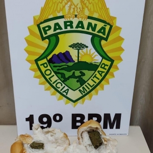 Os PMs foram até o local e o elemento encaminhado ao Destacamento para os devidos procedimentos, e, durante a revista em seus pertences pessoais, foram localizados, em meio a dois pães franceses, pequenas quantidades de substância análoga a maconha, 02 gramas, e 10 gramas, totalizando 12 gramas da droga.