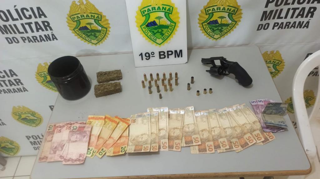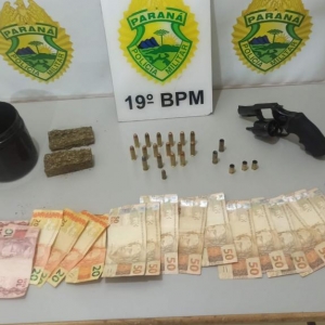 Após, foi localizado na residência do elemento, uma munição de calibre .32 intacta, 2 estojos deflagrados de calibre .38 e aproximadamente 126 gramas de maconha.