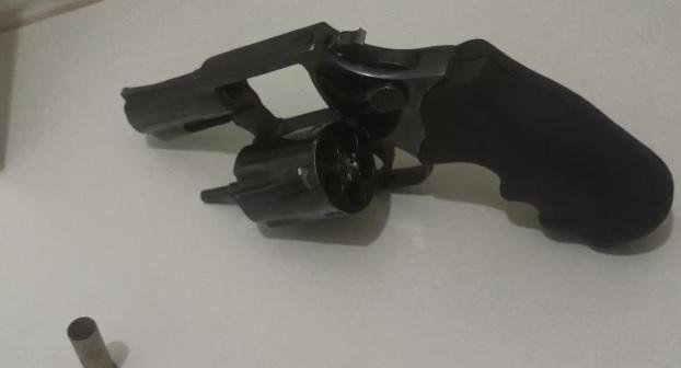 Um dos policiais militares refez o trajeto a pé que o veículo GM/Astra fez do momento da primeira visualização até a abordagem, e localizou um revólver calibre 38 na calçada, contendo 5 munições intactas do mesmo calibre.