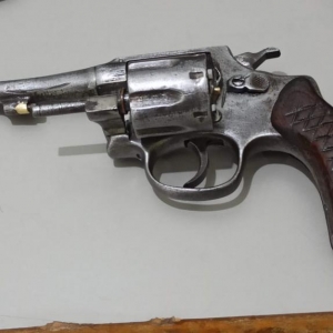 Foi localizado no terreno ao lado, um revólver cal. 32 de numeração sem munições que o elemento tentou dispensar durante a fuga.