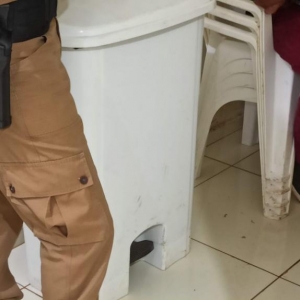 Abordado o até então suspeito, resistiu a prisão, novamente tentando fugir, em revista a residência foram localizados uma case com uma câmera fotográfica e demais equipamentos, três capacetes e um Datashow. O rapaz disse que havia comprado os produtos por R$ 100,00.