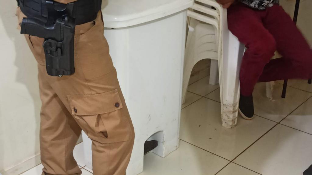 O acusado e o material apreendido e a arma foram encaminhados para a delegacia.