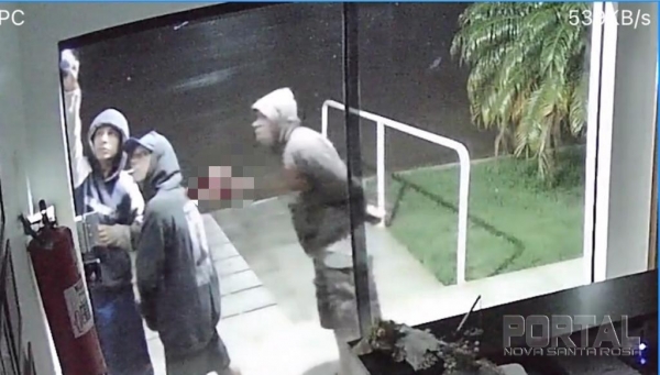 Na madrugada desta sexta-feira (05), as 02h35, câmeras de segurança flagraram três elementos tentando invadir um frigorífico de Nova Santa Rosa, eles cortaram a cerca do estabelecimento comercial e danificaram a fechadura tentando arrombar a porta de vidro do escritório, o sistema de alarme disparou e os elementos fugiram.