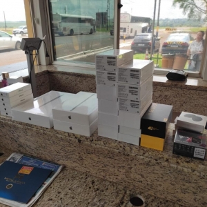 Já por volta das 10h25, em Santa Terezinha de Itaipu (PR), durante abordagens na Unidade Operacional da PRF, os policiais encontraram 28 celulares e equipamentos de informática, 10 cigarros eletrônicos e quatro cosméticos importados irregularmente do Paraguai. Os dois ocupantes do Peugeot 206 no qual estavam as mercadorias foram detidos pelo crime de descaminho. Horas mais tarde, por volta das 17h40, no quilômetro 625 da BR-277, em Céu Azul (PR), durante fiscalização de ultrapassagens irregulares, policiais rodoviários federais apreenderam dezenas de celulares importados ilegalmente do país vizinho em um Chery Tiggo que acabara de fazer uma ultrapassagem proibida. O motorista e as duas passageiras foram detidas por descaminho.