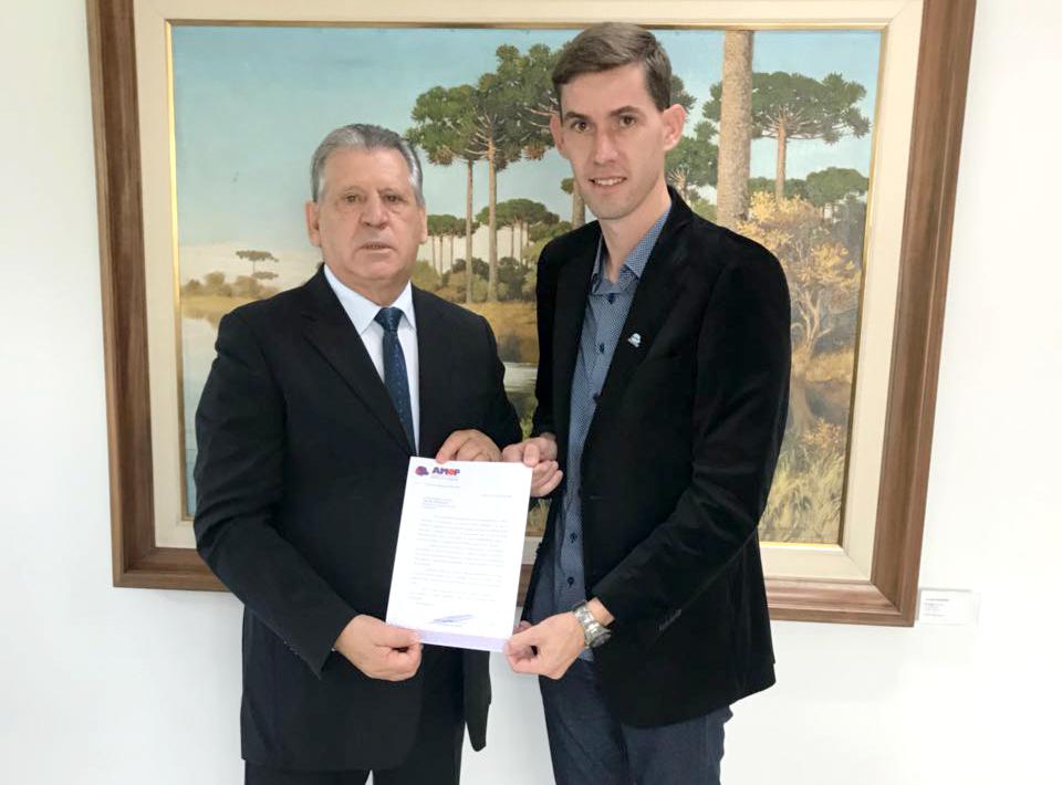 DEMANDA REGIONAL – Em busca de melhorias para a PR 182, Anderson que também é presidente da AMOP (Associação dos Municípios do Oeste do Paraná), entregou um ofício ao chefe da Casa Civil, Dilceu Sperafico durante audiência. Anderson esteve acompanhado do secretário executivo da Amop, Vinicius Almeida dos Santos.
