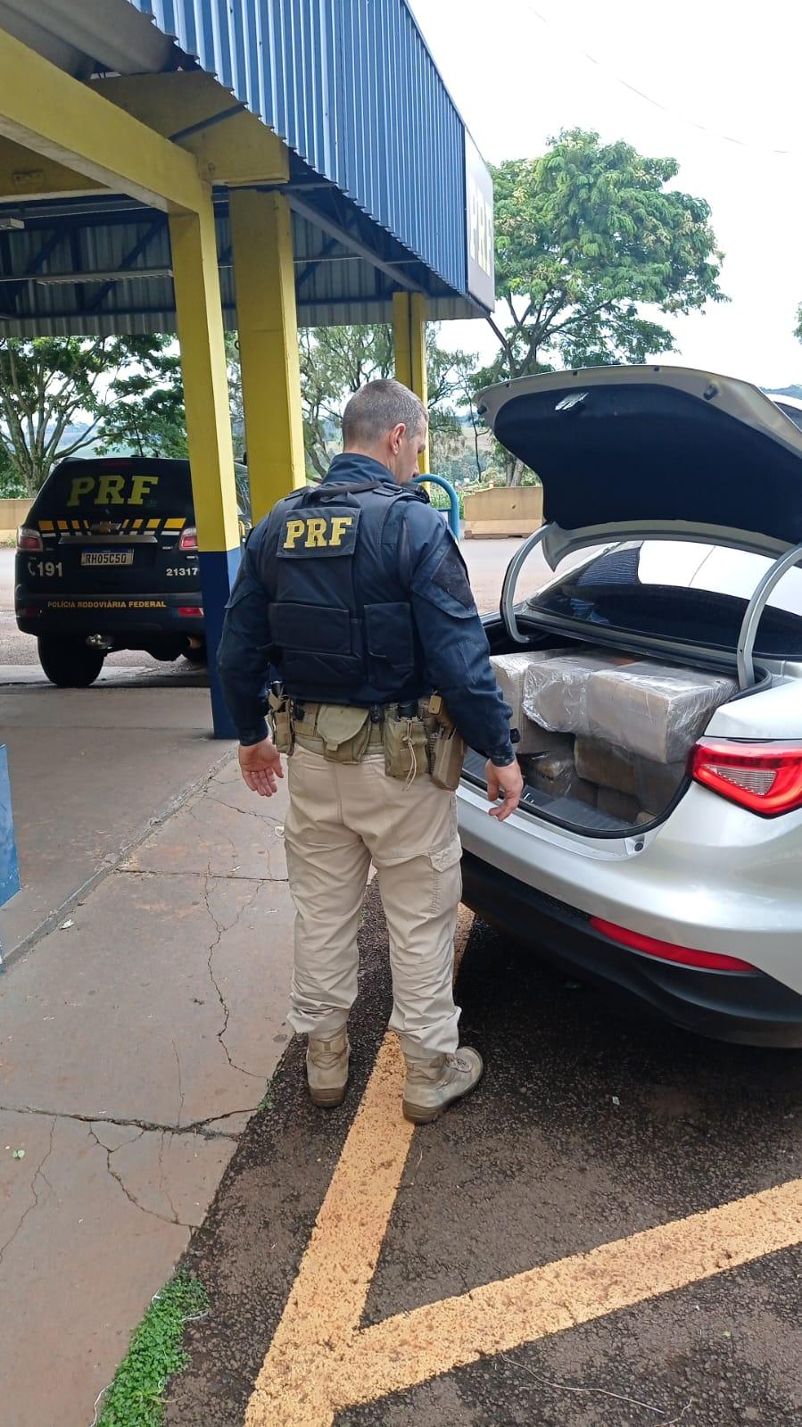 Em outra ação, desta vez em Céu Azul, durante fiscalização de combate ao crime, a equipe da PRF abordou um Fiat/Cronos registrado em nome de uma locadora de veículos, e localizou em seu interior fardos embalados contendo tabletes de à maconha. O condutor relatou que recebeu a droga em Foz do Iguaçu/PR e levaria até Porto Alegre/RS mediante pagamento de quantia em dinheiro. Foram encontrados 285Kg da droga. O homem foi preso em flagrante e encaminhado a delegacia de Matelândia.