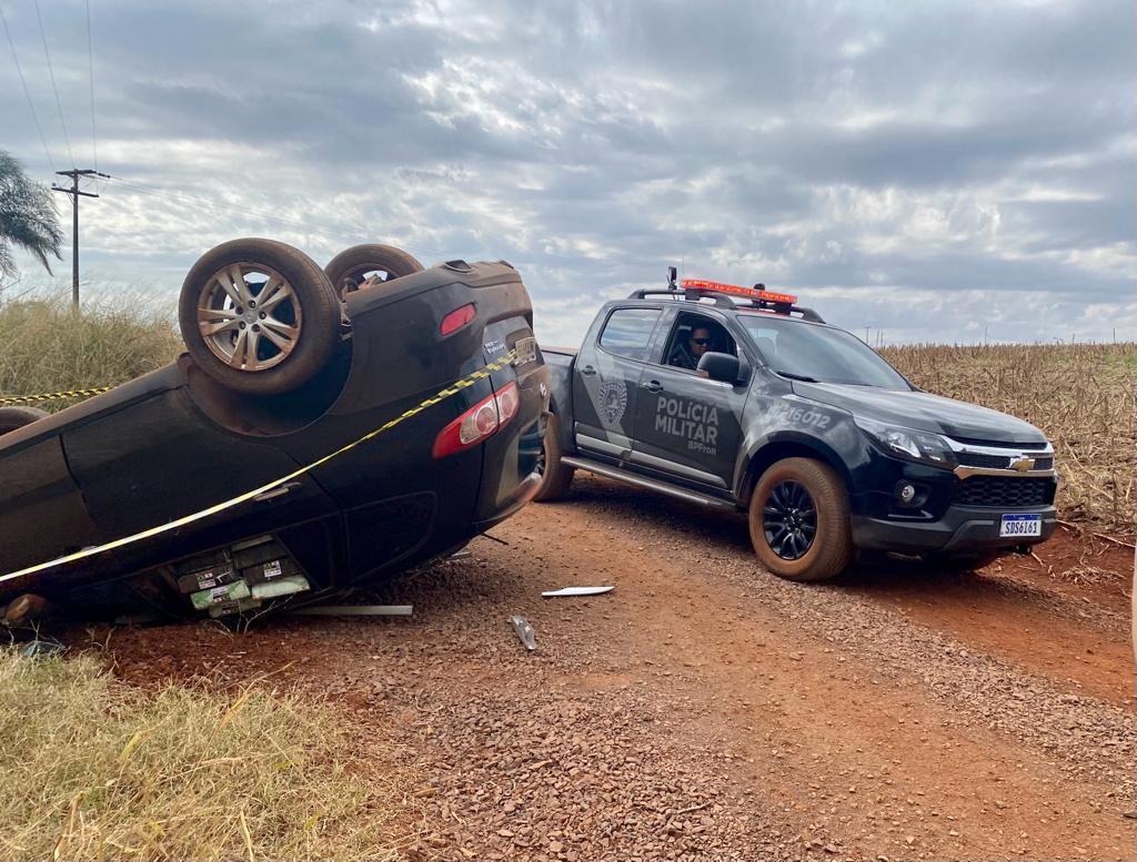 Iniciou-se então um acompanhamento e aproximadamente 150 metros o veículo perdeu o controle capotou. Durante o acidente, o motorista foi ejetado e faleceu no local. O outro elemento se embrenhou em uma mata ciliar e não foi mais localizado.