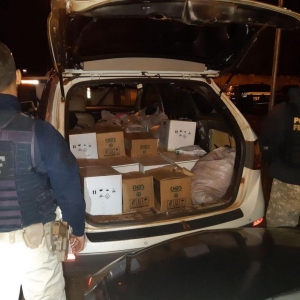 Logo depois tentaram abordaram uma caminhonete Nissan Frontier, mas fugiu e foi perseguida. Alguns quilômetros depois, o veículo foi encontrado, também abandonado. No interior, estavam 25 mil carteiras de cigarros contrabandeados.