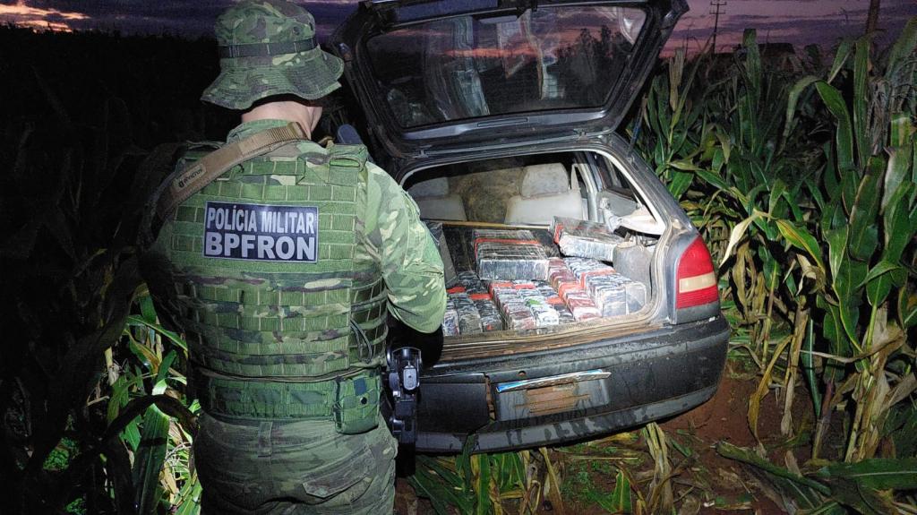 Após alguns quilômetros, o condutor adentrou em um milharal e abandonou o veiculo, não sendo localizado.