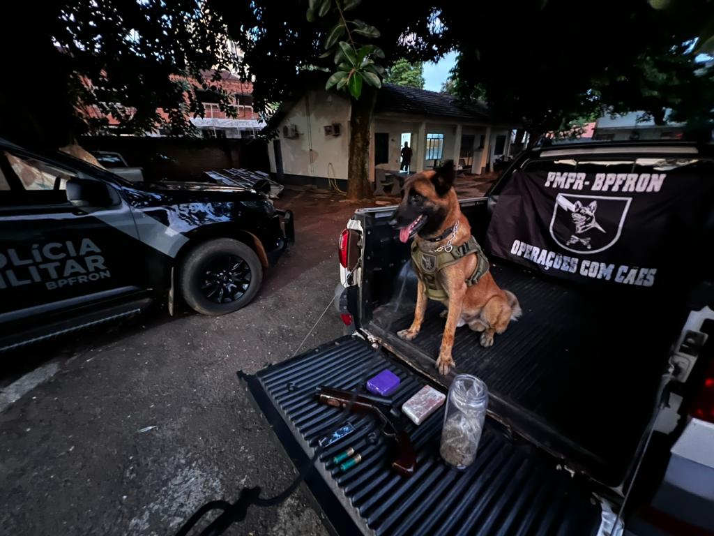 No local foram apreendidos 0,917 gramas de substância análoga a maconha, uma arma de fogo e duas munições. Nesta ação um homem foi preso.