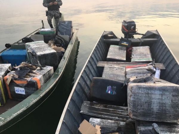 A embarcação e carga foram encaminhadas para a Alfândega da Receita Federal em Foz do Iguaçu.
