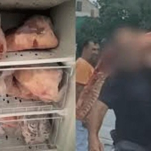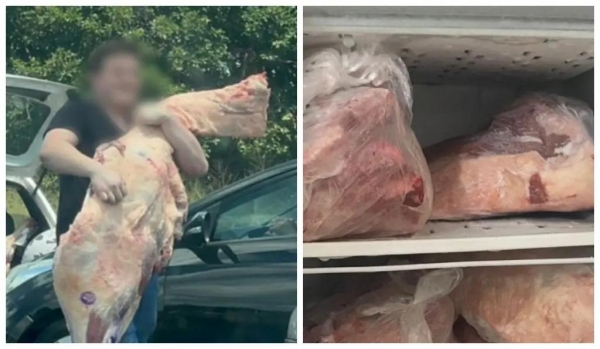 O homem foi flagrado "abraçado" em um pedaço de carne. A mercadoria saqueada foi devolvida embalada em dois sacos plásticos e será descartada. Com ajuda de imagens de populares, pelo menos 11 placas de carros envolvidos foram reconhecidas e oito pessoas identificadas.