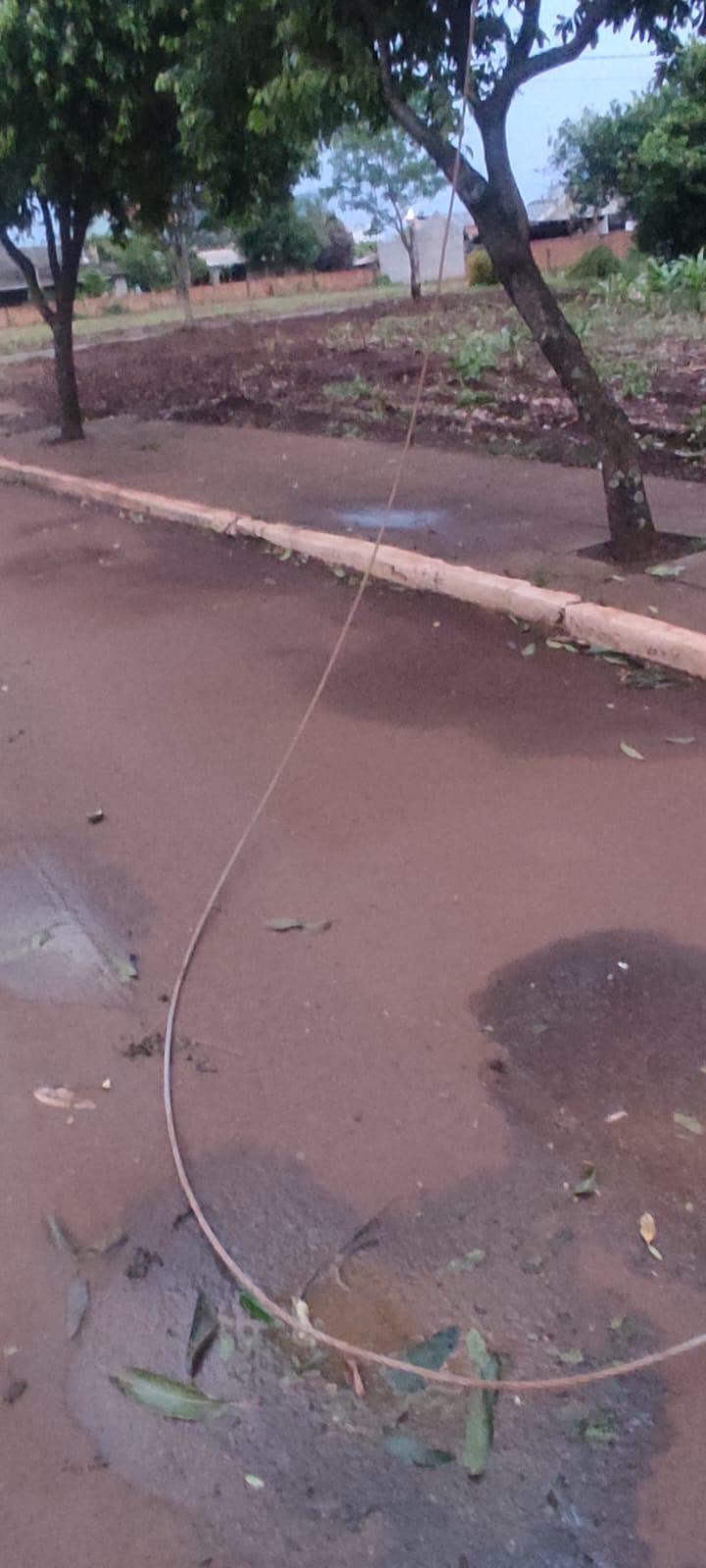 Na manhã deste domingo, galhos caíram sobre a fiação na Avenida Santo Cristo, nas proximidades do Posto Shell. Um morador registrou as imagens e encaminhou à reportagem.