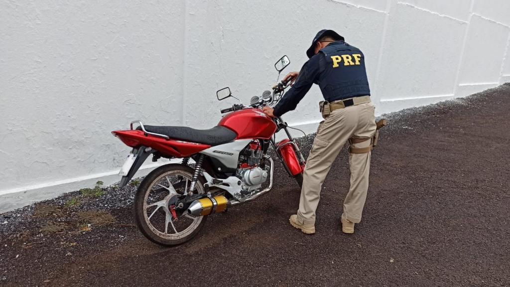 Na manhã desta segunda-feira (15), a Polícia Rodoviária Federal recuperou uma motocicleta com indicativo de roubo.