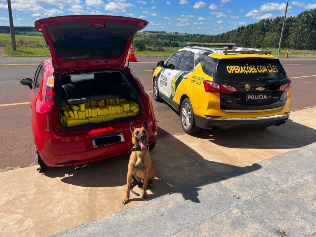 De acordo com a PM, o motorista foi abordado pela equipe no KM 509 da PRc 272. Ao revistarem o carro, encontram 234,7 kg da droga no porta malas do Fiat Uno.