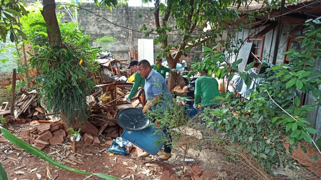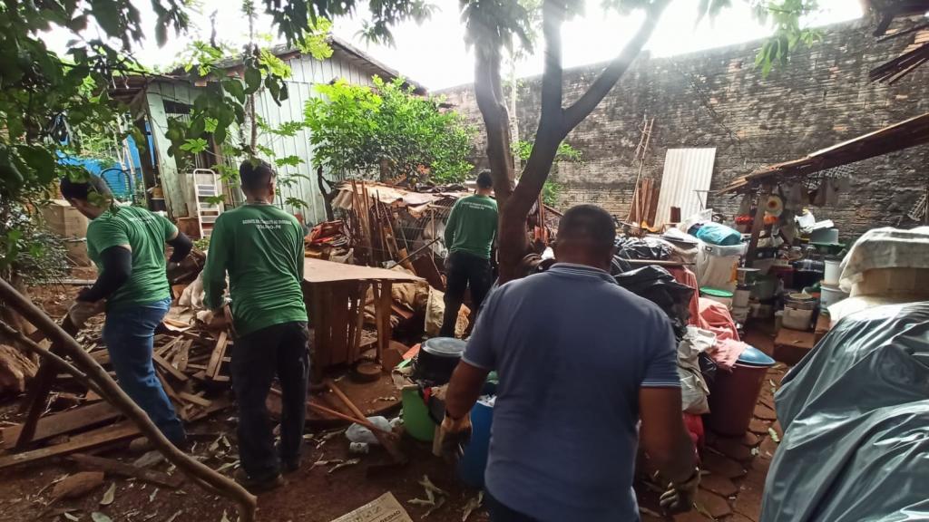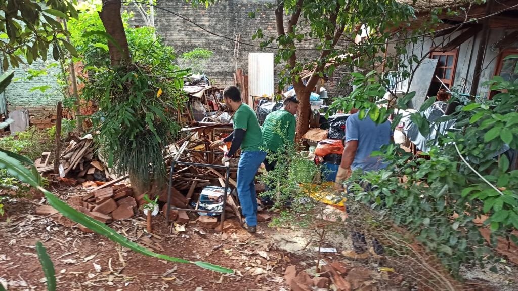 A mulher de 66 anos tem a síndrome de acumular tudo o que encontra pela frente, a equipe que está fazendo o recolhimento do lixo está tendo muita dificuldade pois tudo que é recolhido a idosa tenta impedir, uma pá carregadeira e também um caminhão caçamba estão fazendo o trabalho da retirada do acúmulo de lixo que será encaminhado para o ecoponto localizado no bairro Santa Clara.