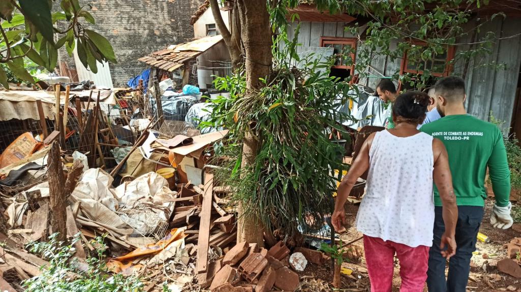 Na manhã dessa segunda-feira equipe da Defesa Civil de Toledo com apoio da Guarda Municipal estiveram em uma residência localizada na avenida Senador Atílio Fontana na área central de Toledo, segundo a denúncia, a mulher mora sozinha em uma casa alugada e se encontra em risco social, a residência que ela mora está caindo e ela mora do lado de fora da residência onde tem bastante acúmulo de lixo propício para o mosquito transmissor da Dengue.