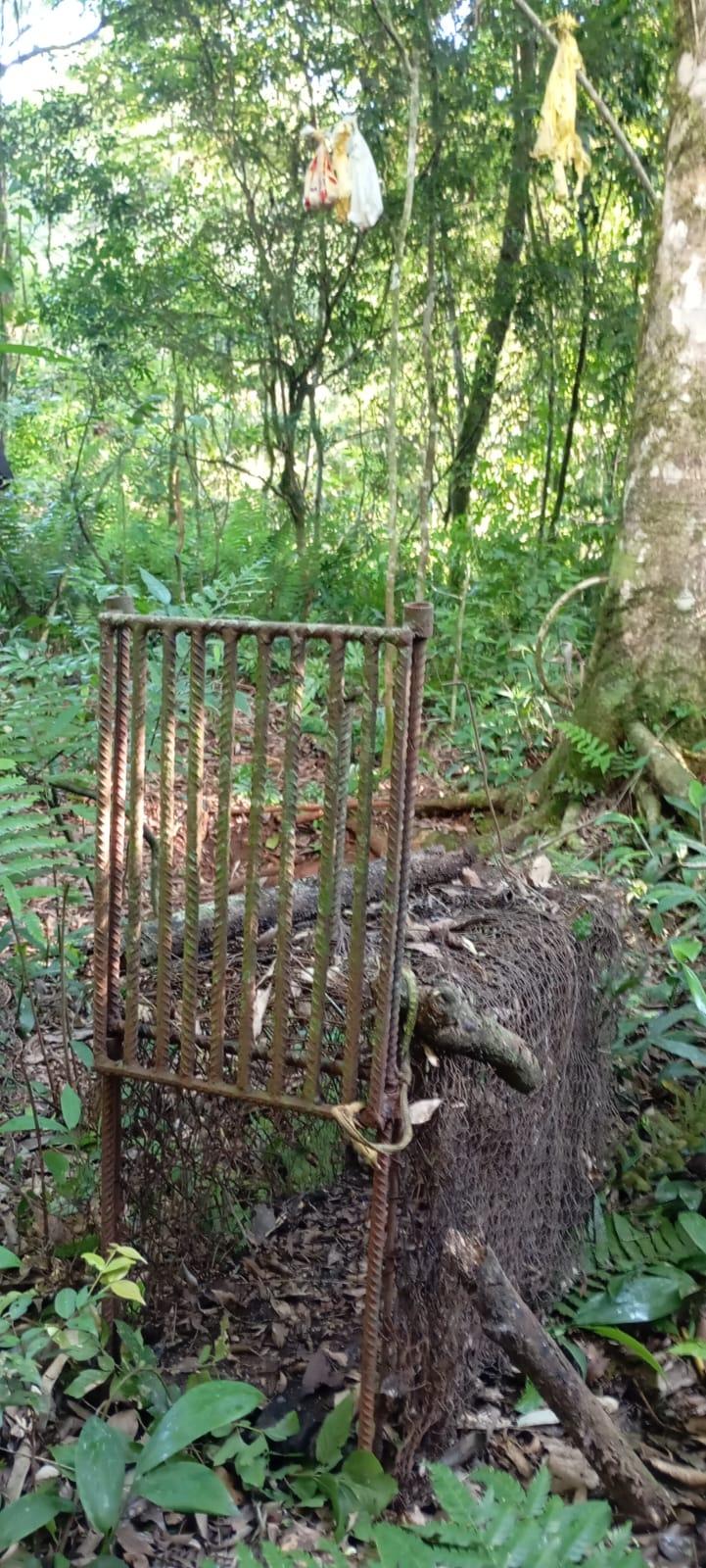 Foi vistoriado um local que vinha sendo monitorado pela equipe. A guarnição deslocou e encontrou o acampamento e duas armadilhas e saleiros.