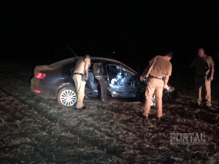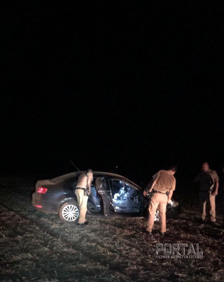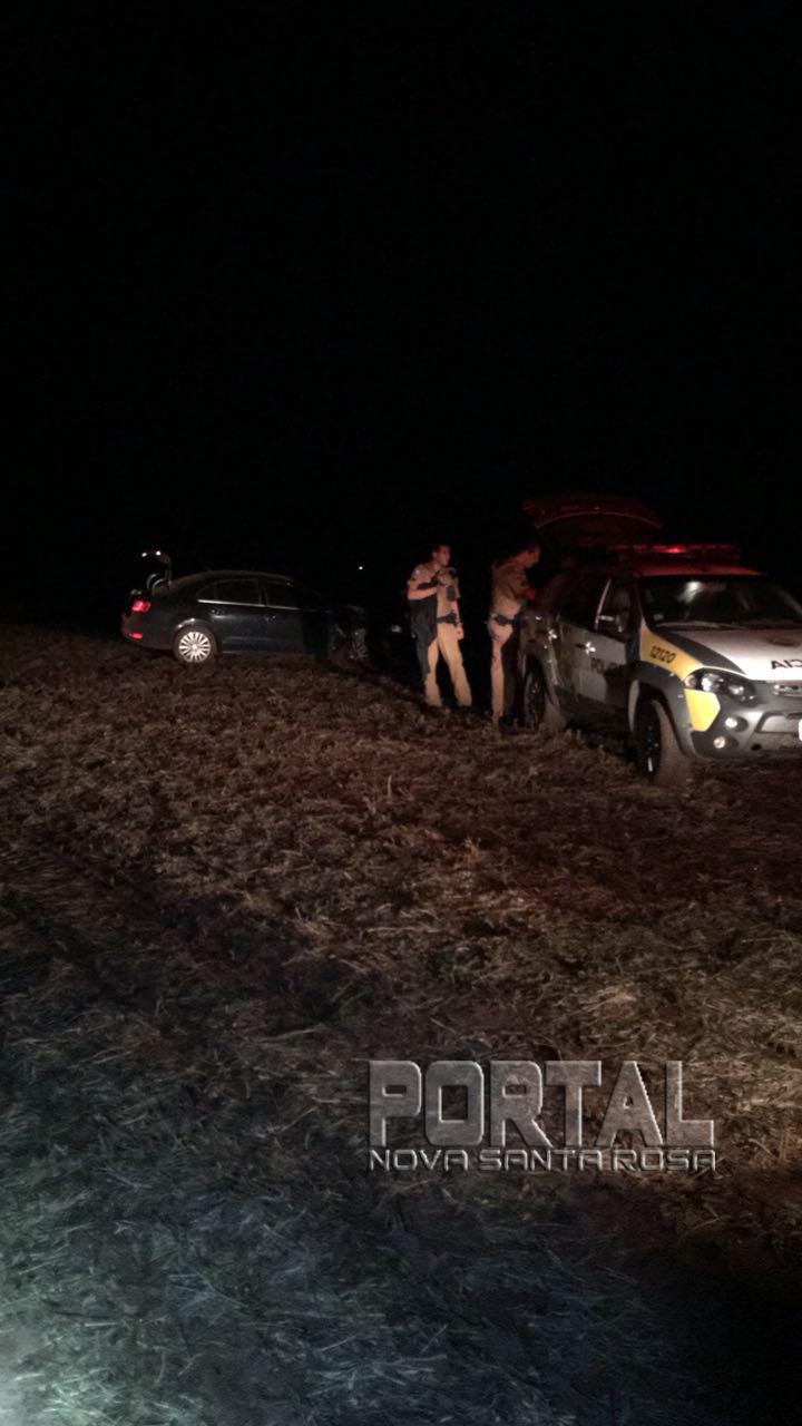 Logo a frente o condutor do Jetta acabou perdendo o controle da direção do mesmo e adentrou meio a plantação com o veiculo, ao tentar fugir correr, ele foi rendido pela equipe e preso.