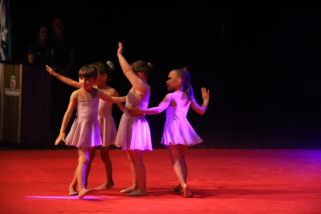 Foram apresentadas 28 coreografias inspiradas nas trilhas sonoras dos filmes Sing 1 e Sing 2, dentro do tema “O Show da Vida”. Cada apresentação destacou o trabalho artístico e técnico desenvolvido ao longo do ano pelas cerca de 180 alunas do projeto municipal de Ginástica Rítmica, coordenado pela técnica Quessila Zago e pela professora Thays Baungart, em uma proposta que une formação lúdica e competitiva.