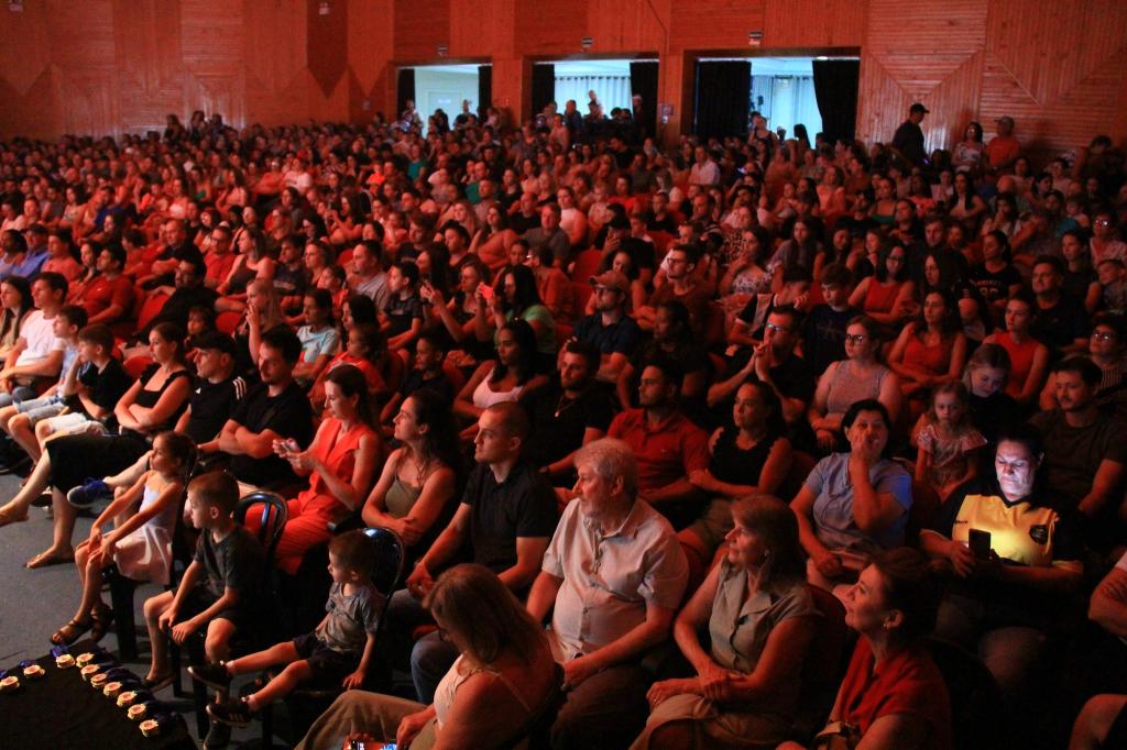 O Teatro Municipal Gustavo Fischer ficou completamente lotado na noite desta quinta-feira (27) para o Espetáculo de Ginástica Rítmica de Nova Santa Rosa 2025, que abriu oficialmente a programação do Natal da Família 2025. O evento contou com a presença de autoridades municipais, familiares das atletas e comunidade em geral.