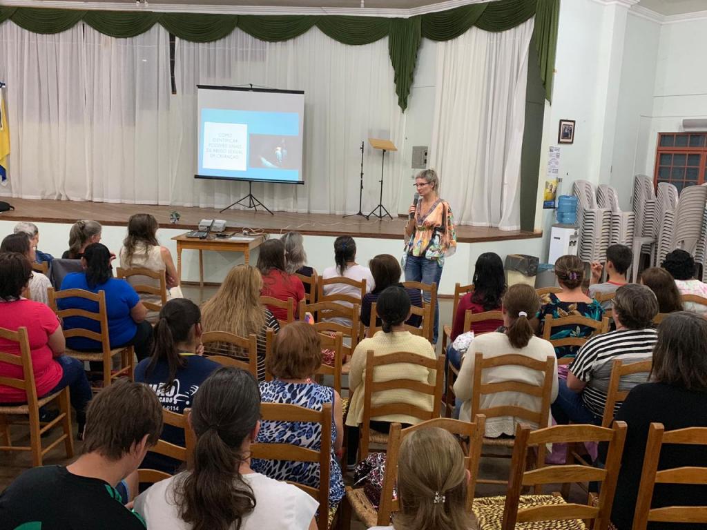 Na segunda-feira (6), integrantes do PAIF – Serviço de Proteção e Atendimento Integral à Família tiveram uma palestra com a psicóloga Fabiele Mentz. O intuito foi orientar sobre o propósito da campanha, os sinais que podem ser percebidos quando uma criança está sendo abusada, os canais de denúncia, entre outros temas. Nesta quinta (16), a palestra será com os adolescentes que fazem parte do Programa Educativo, voltado aos alunos do 8º e 9º anos do município.