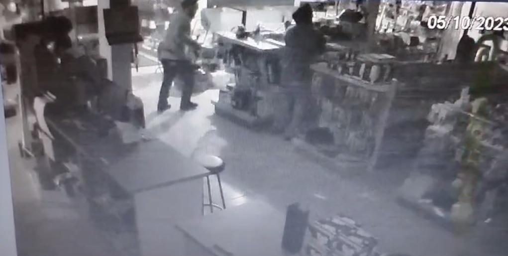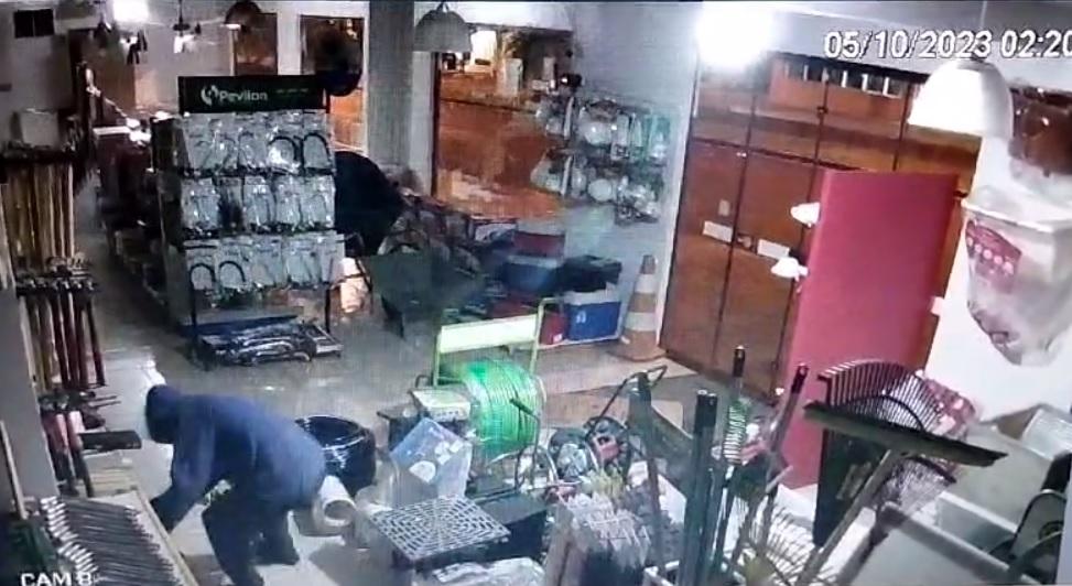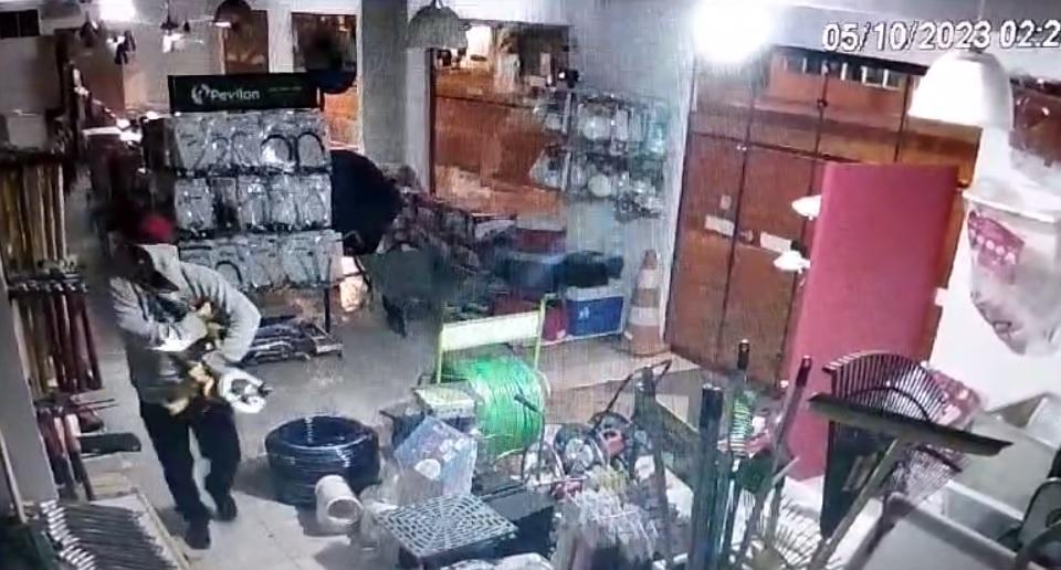 Conforme pôde ser observado nas imagens das câmeras de segurança que flagraram a ação, três indivíduos chegaram no comércio por volta das 2h20 da madrugada, e levaram os equipamentos que estavam na prateleira.