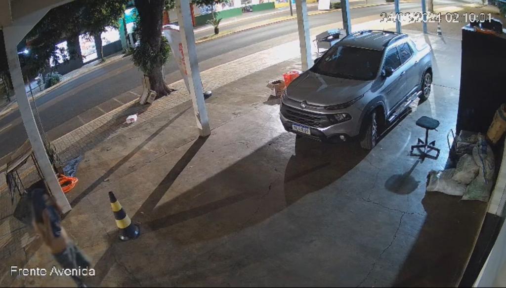 Conforme as imagens das câmeras de segurança cedidas ao Portal Nova Santa Rosa, um homem, que utiliza uma camiseta para cobrir a cabeça, se aproxima a pé do estabelecimento e leva do local uma lavadora industrial de alta potência.