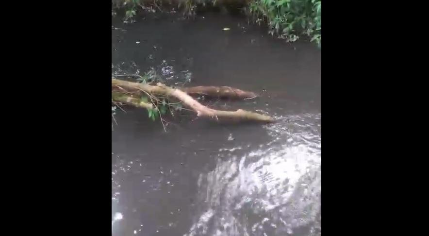 As imagens feitas por um internauta que através do vídeo mostram a cor da água quando o esterco caiu no leito e é levado pela correnteza do rio.