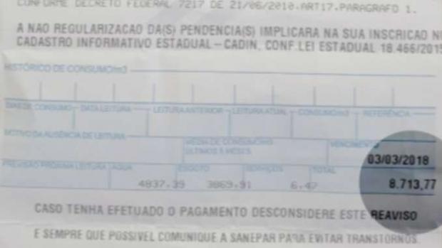 A empresa responsável pelo abastecimento de água do Paraná foi até a residência e informou que não houve nenhum problema na leitura do relógio, visto que passam por testes realizados pelo Inmetro (Instituto Nacional de Metrologia, Qualidade e Tecnologia) , além de não detectarem nenhum vazamento no interior da casa.
