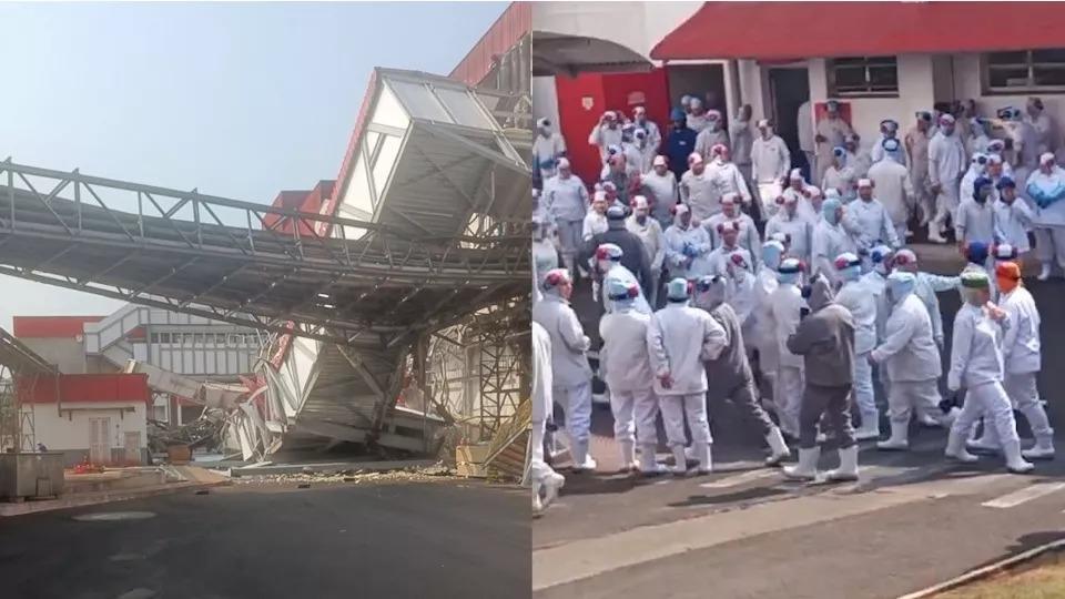 A estrutura de uma escada desabou em frigorífico localizado na cidade de Medianeira.