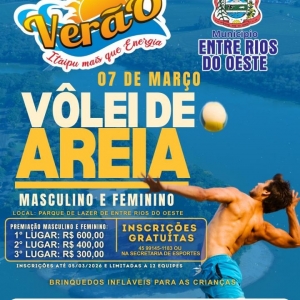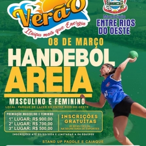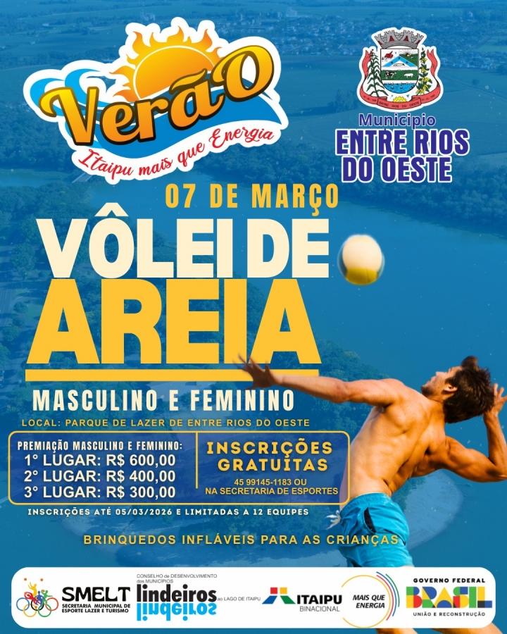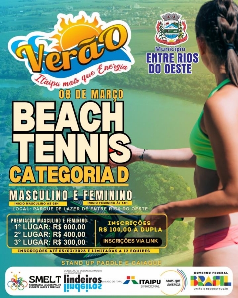 O município de Entre Rios do Oeste se prepara para sediar a etapa Verão Itaipu Mais que Energia 2026, um evento esportivo que ocorrerá nos dias 07 e 08 de março, no Parque de Lazer (praia artificial). A programação contará com três modalidades esportivas: Vôlei de Areia, Handebol de Areia e Beach Tennis, todas nas categorias masculina e feminina. Essa é uma excelente oportunidade para os atletas locais e visitantes mostrarem suas habilidades e competirem por prêmios atrativos.