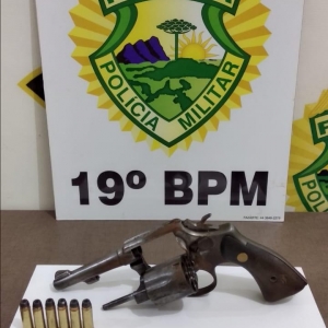 Ao ser realizada a abordagem e busca no individuo que pilotava a motocicleta os policiais encontraram um revolver calibre 38.