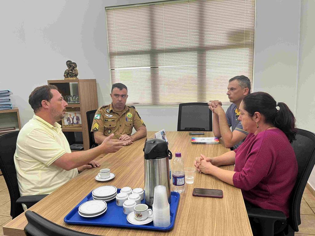 O prefeito Rodrigo Schanoski, a vice-prefeita Janaína Müller Geraldi e o secretário de Educação Jony Zils se reuniram na manhã desta quinta-feira (6) com o sargento Everson Wulf, comandante do destacamento local da Polícia Militar. O objetivo é intensificar as ações emergenciais de segurança nas escolas, após o ataque na creche em Blumenau no dia de ontem (5).