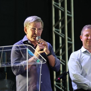 Durante seu pronunciamento, o prefeito Lari Hitz destacou a importância do evento para o município e reforçou o convite à população.