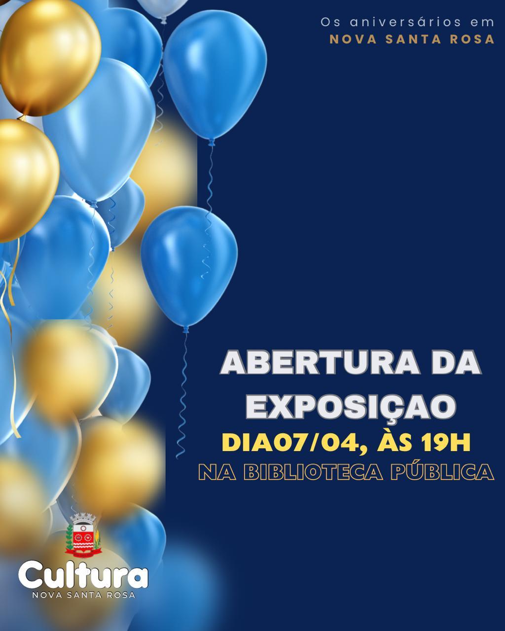 O Departamento de Cultura promoverá na noite desta segunda-feira (07), a partir das 19h, na Biblioteca Pública Municipal, a exposição “Os aniversários em Nova Santa Rosa”.