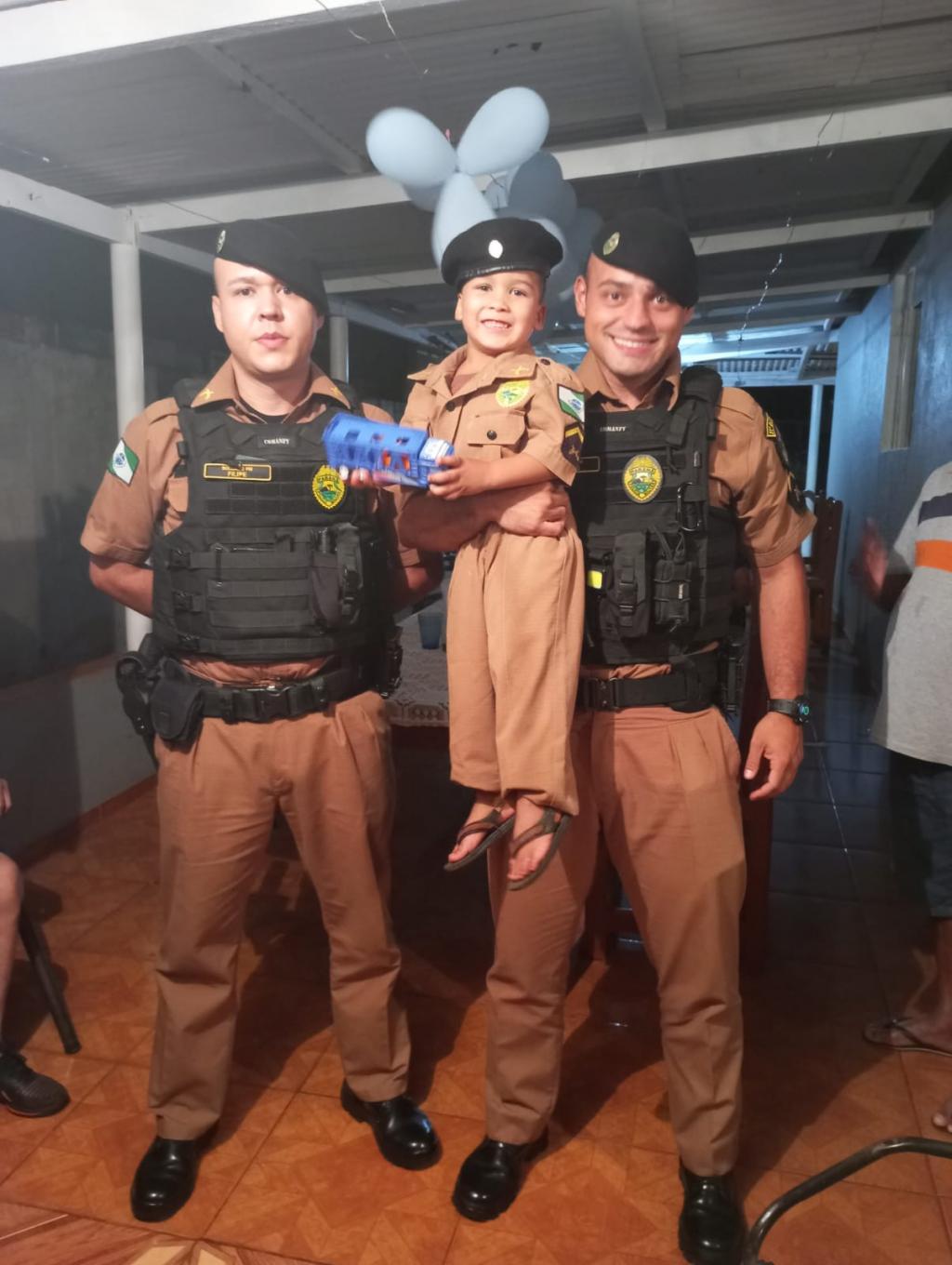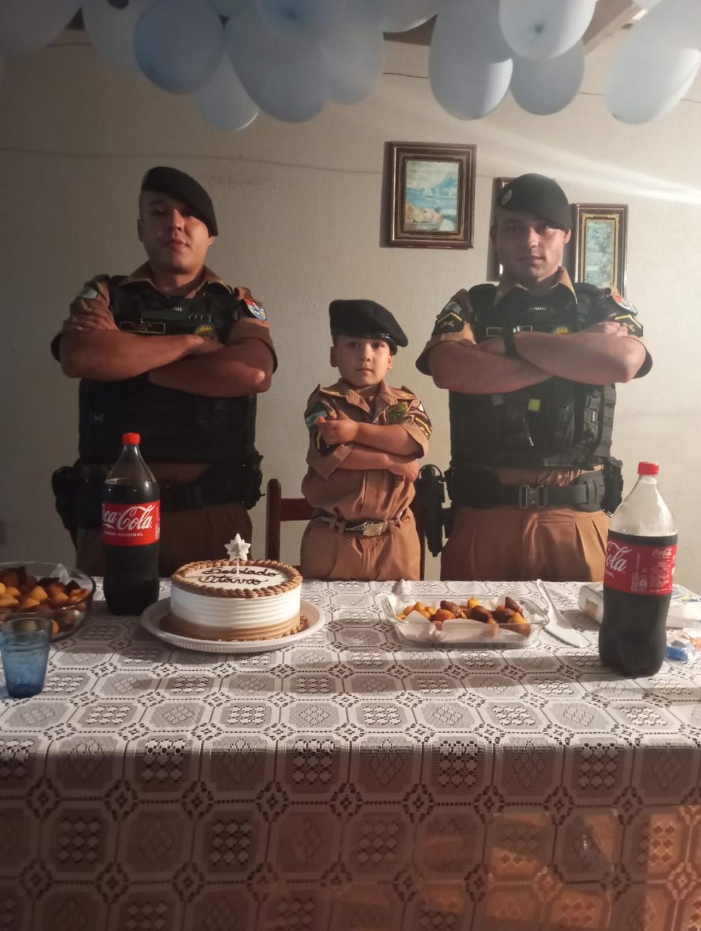 Durante o dia ele vestiu uma roupinha semelhante a farda, conheceu a estrutura da Unidade e andou de viatura. Já na parte da noite, os policiais foram convidados para cantar os parabéns junto com o aniversariante e assoprar as velinhas.