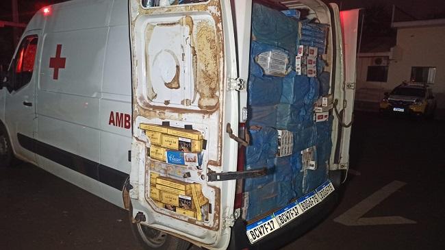 Um homem de 49 anos foi preso na noite desta quinta-feira na PR-486 em Toledo com uma falsa ambulância carregada com 170 caixas de cigarros contrabandeados do Paraguai.