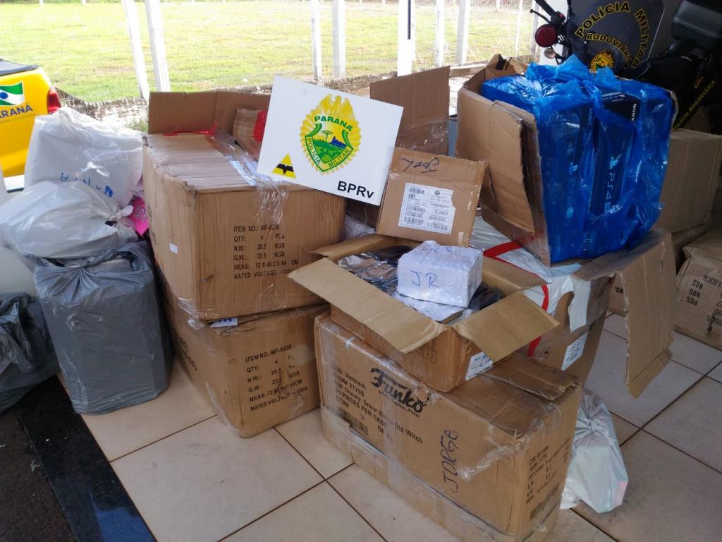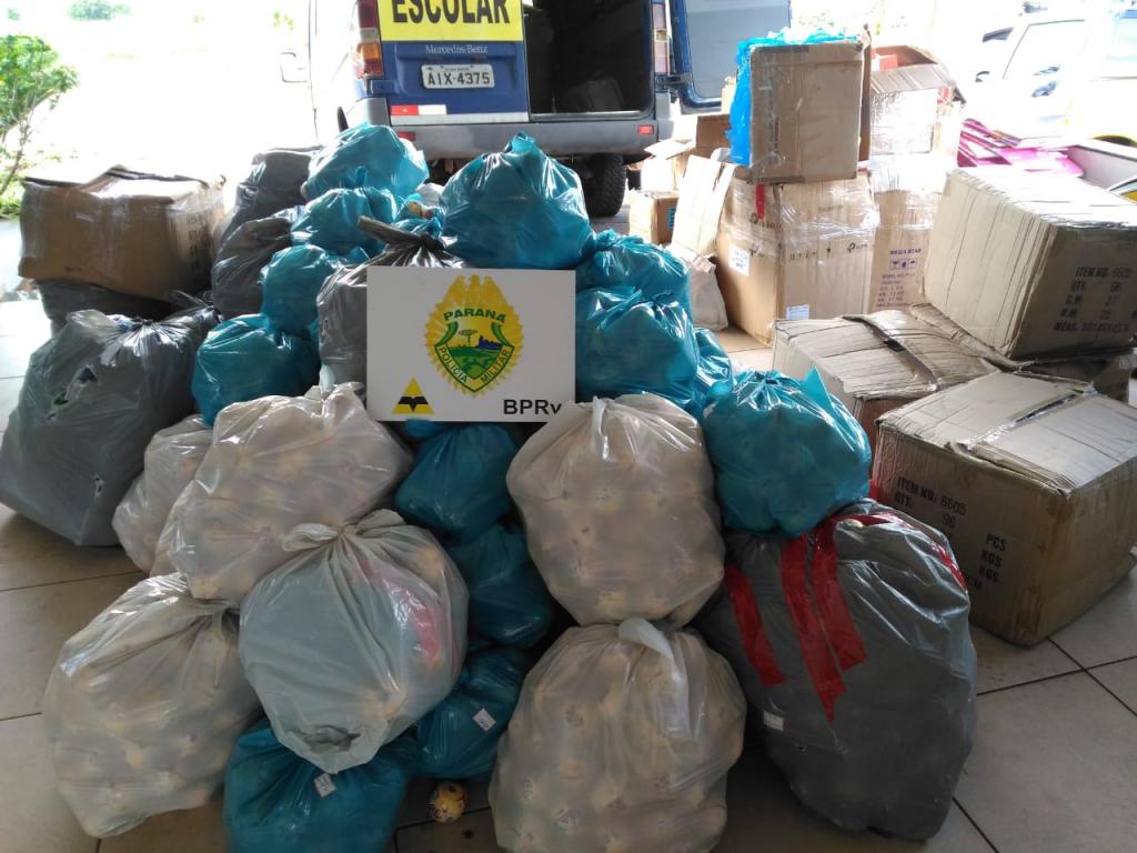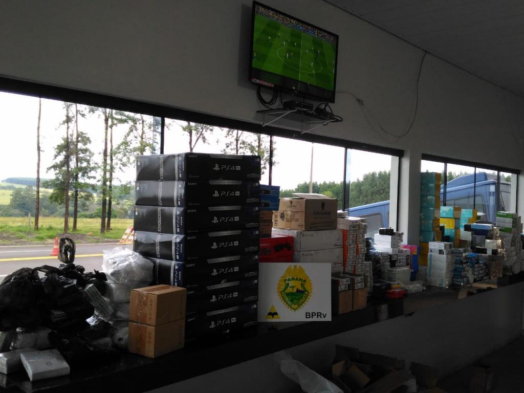 Após uma vistoria no interior da Van foi localizado grande quantidade de brinquedos, acessórios para celulares, vídeo games, celulares, rádios comunicadores, eletrônicos, massageadores, roteadores, carregadores para celulares.