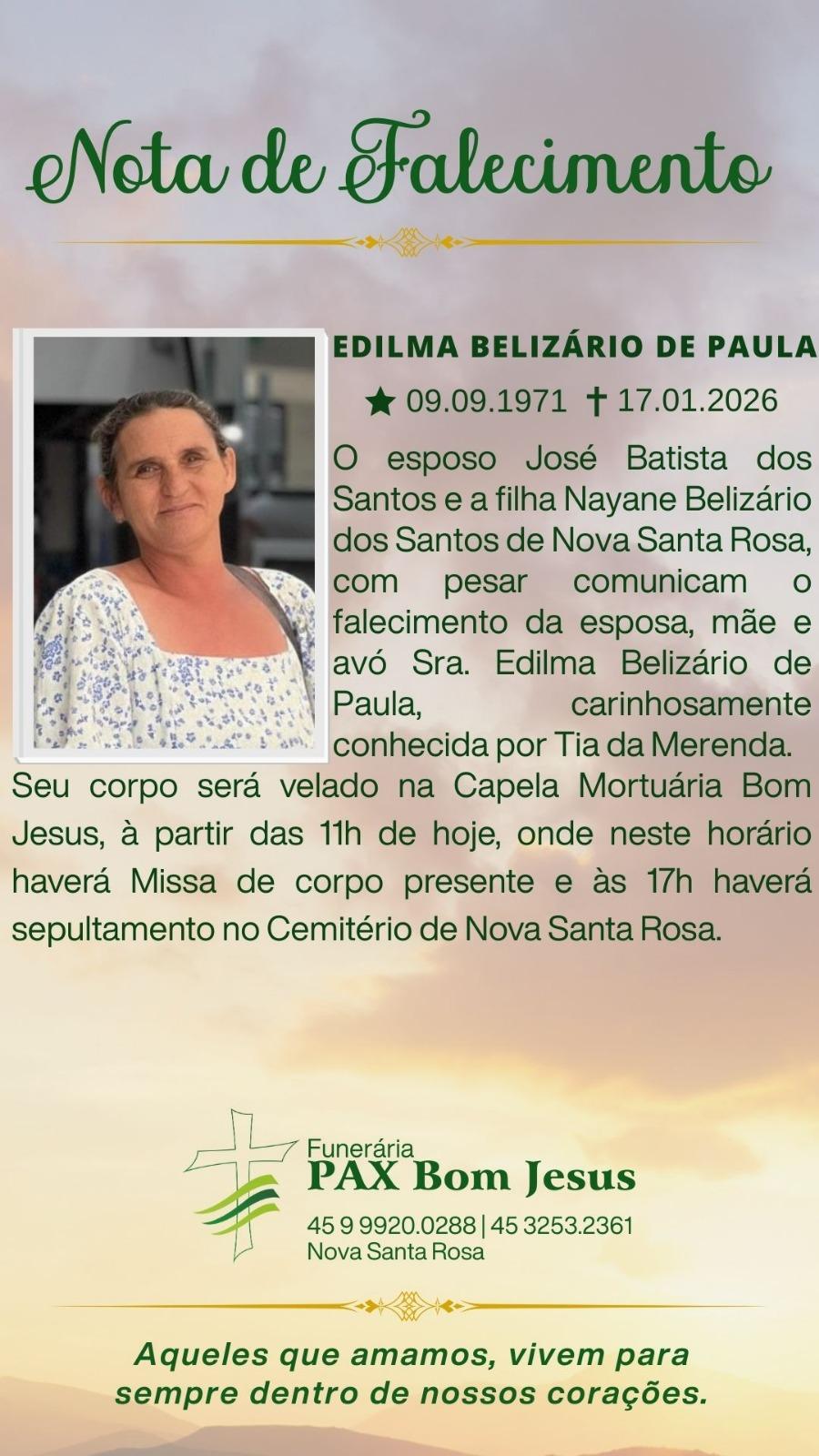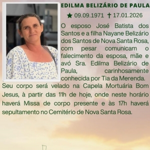 A confirmação de morte encefálica de Edilma Belizario de Paula de 54 anos resultou em um gesto de solidariedade que pode transformar a vida de ao menos oito pessoas. A família autorizou a doação de múltiplos órgãos, e a captação foi realizada na noite de sábado (17), no Hospital Bom Jesus, em Toledo.