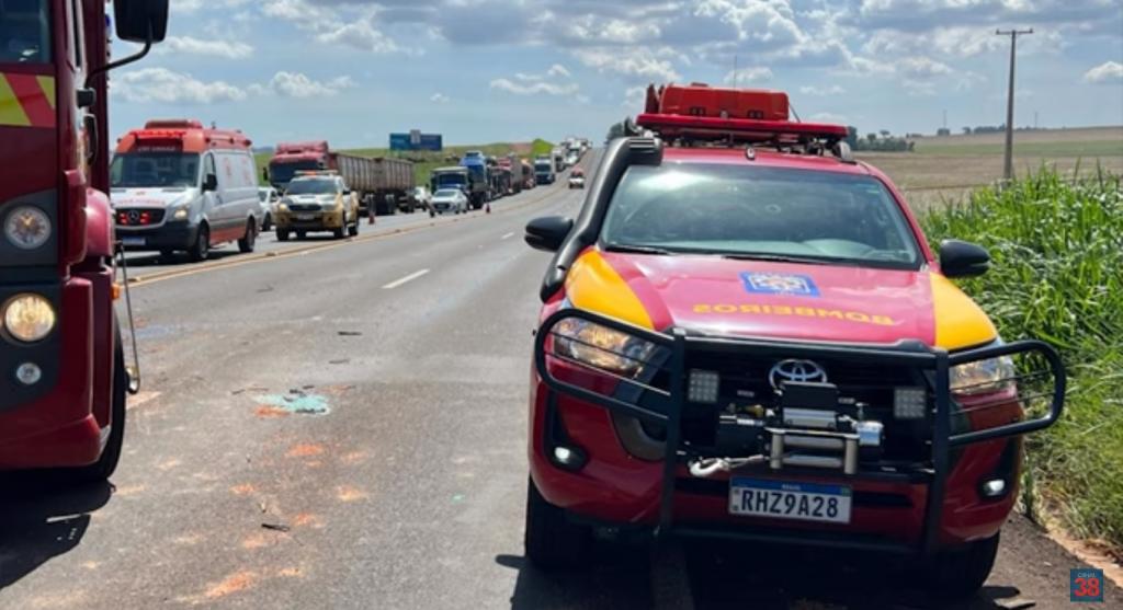 Uma criança e três adultos ficaram feridos após uma colisão entre um carro do modelo Meriva, uma caminhonete e um caminhão que transportava tijolos na PR-444, no distrito Caixa de São Pedro, em Arapongas, norte do Paraná, na manhã desta quarta-feira (28).
