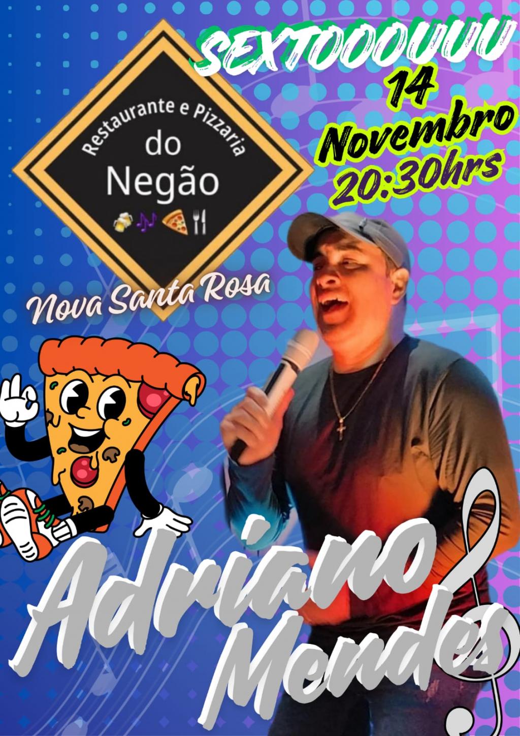 Para quem pretende curtir a programação durante a noite, o Restaurante e Pizzaria do Negão terá música ao vivo nesta sexta-feira, com apresentação de Adriano Mendes a partir das 20h30. Amanhã, a atração será a dupla Eder & Kaline, também às 20h30.