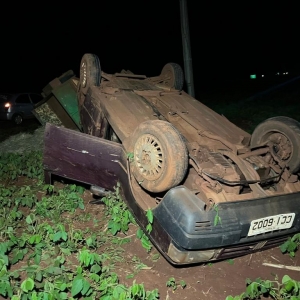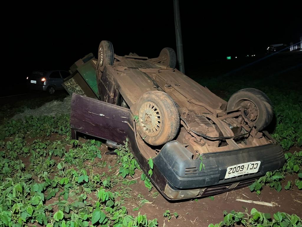 Um Fiat Uno com placas de Maripá tombou na noite de hoje, domingo (05), nas proximidades do laticínio, rodovia estatual PR 491 entre Esquina Santa Fé e o trevo de acesso ao município de Maripá.