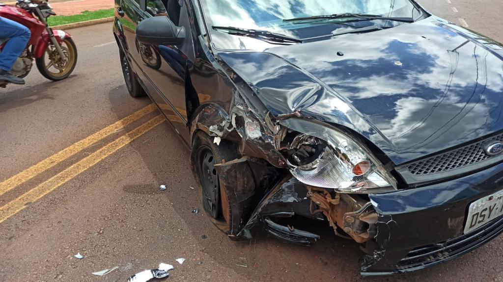 O Ford Fiesta de cor preta com placas de Toledo que era conduzido por uma mulher colidiu em outro Fiesta, só que vermelho que estava estacionado na rua Pedro Álvares Cabral no Jardim Concórdia em Toledo.